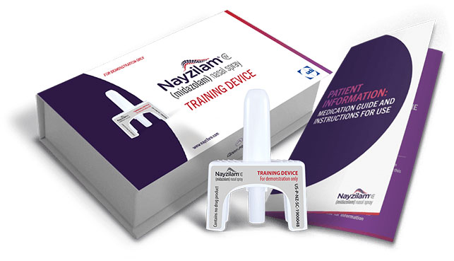 The NAYZILAM training kit includes information to help patients and their caregivers practice how to use the nasal spray, so they know what to do during a seizure cluster emergency.